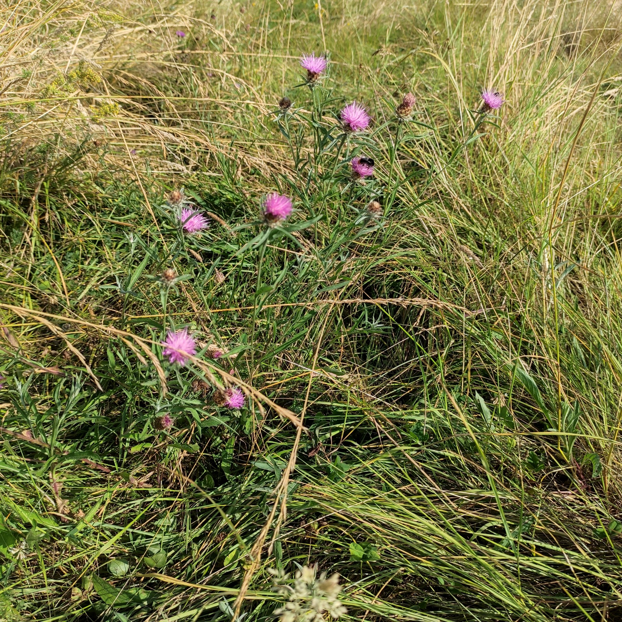 On pourrait les prendre pour des mauvaises herbes, des chardons ratés qui n’auraient pas les piquants de leurs cousins. Pourtant, en ce jour d’été, c’est la fleur du moment pour les insectes butineurs, un vrai Netflix en plein air : on peut se poser des heures devant à admirer la vie qui vient s’y nourrir.