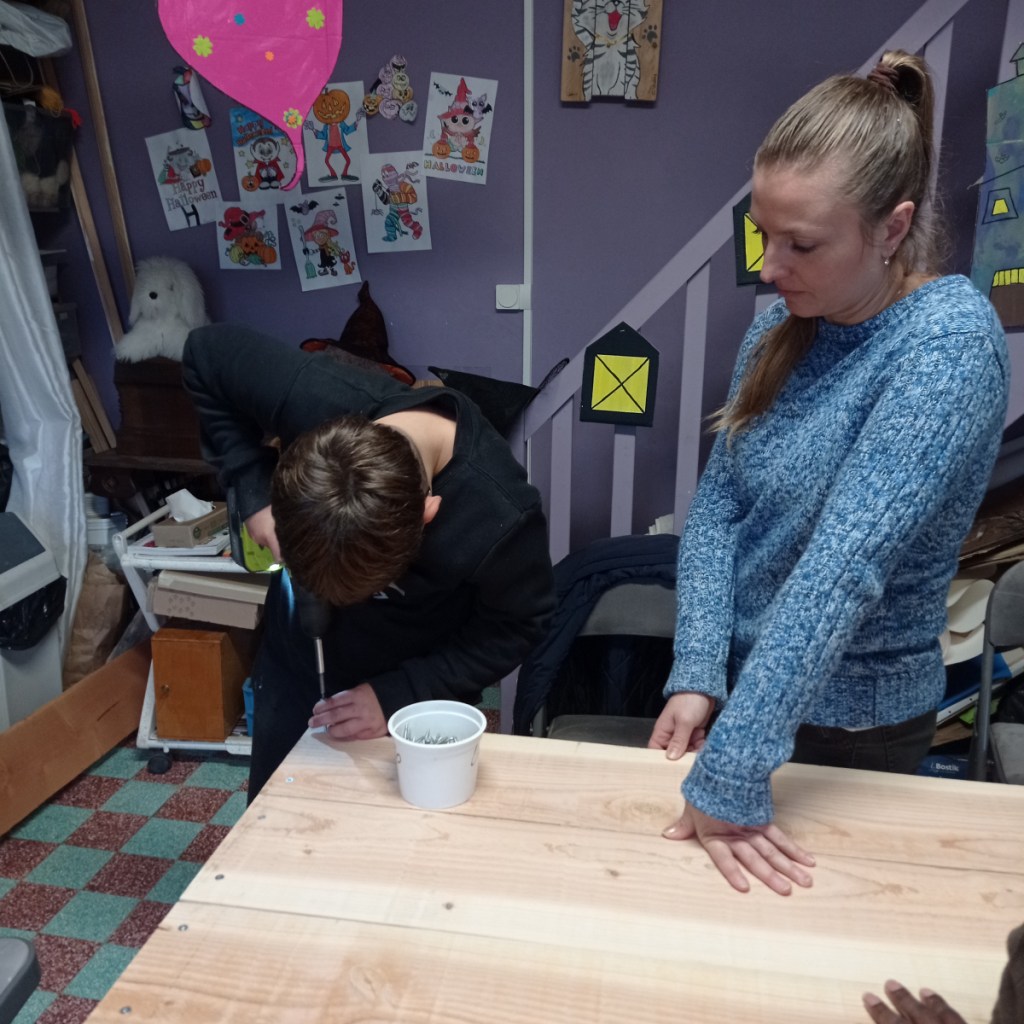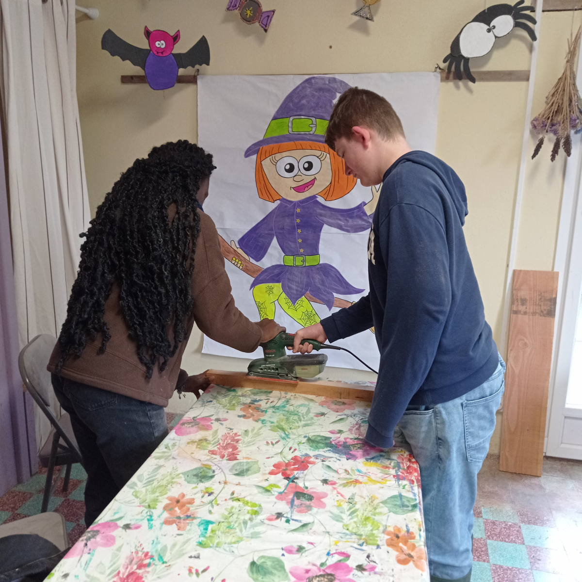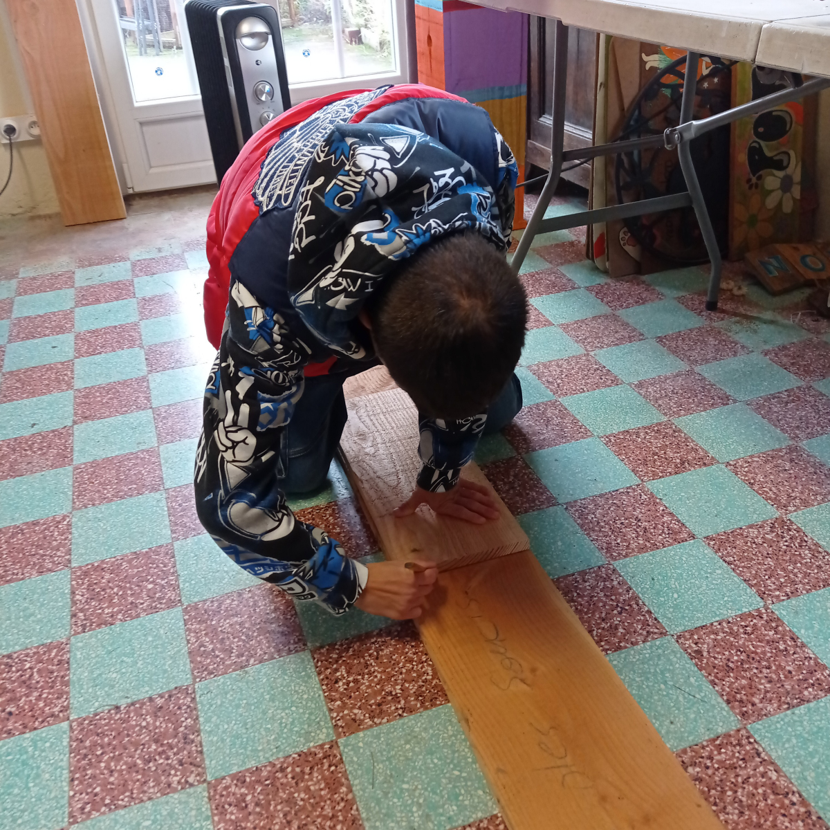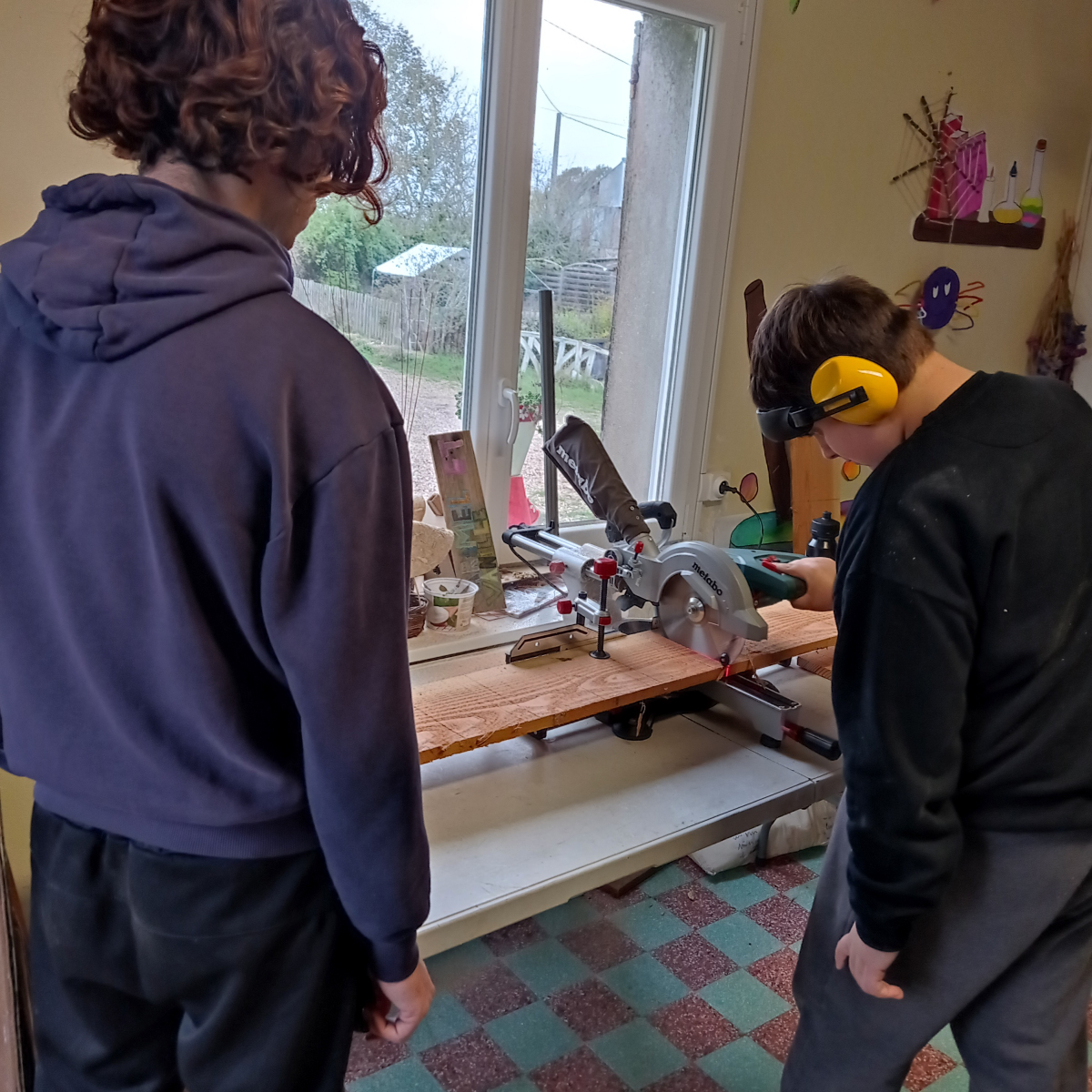 Puis nous avons mis nos groupes et jeunes à contribution pour mesurer, découper, poncer et assembler :