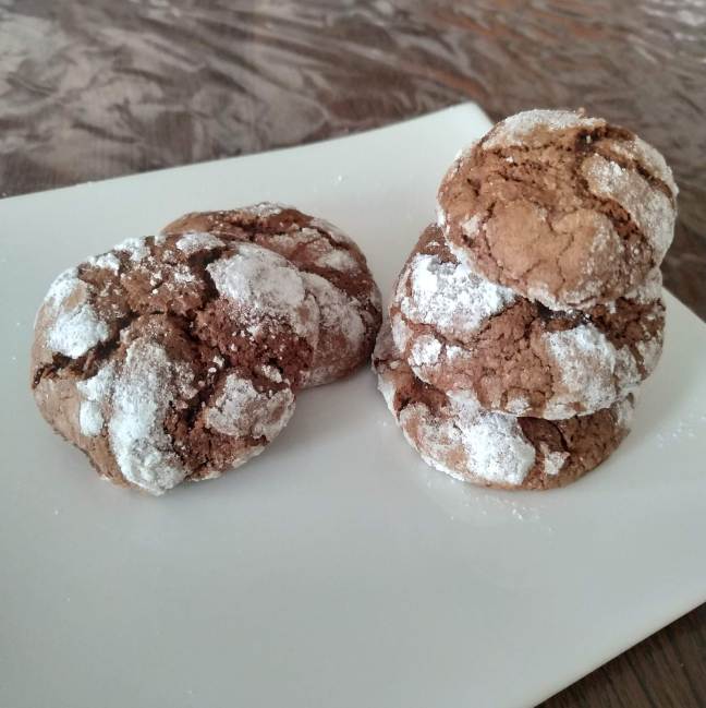 8. Enfournez environ 12 minutes. Les biscuits vont craqueler. A la sortie du four ils paraissent mou. La croûte va durcir en refroidissant.