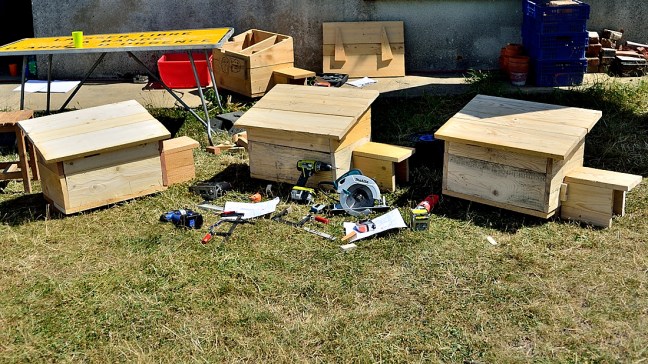 Puis nous avons mis nos groupes et jeunes à contribution pour mesurer, découper, poncer et assembler :