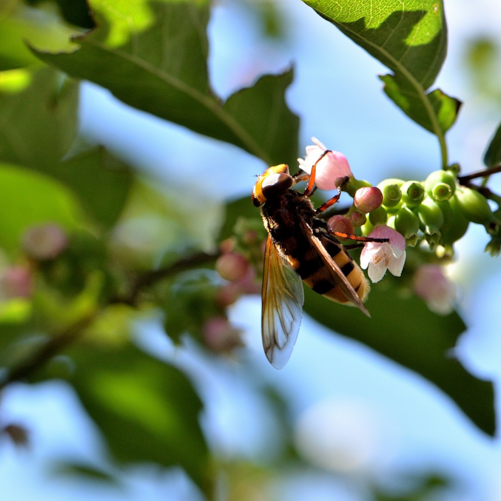 Première observation d’un imitateur du frelon. La question subsiste : est ce Volucella zonaria ou Milesia crabroniformis ?