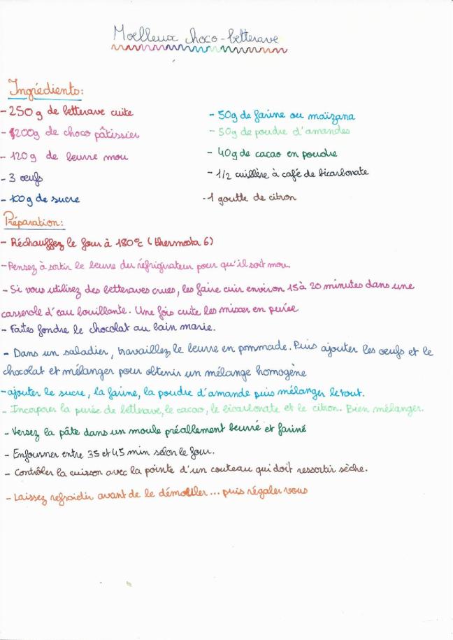 7. Incorporez la purée de betteraves, la cacao, le bicarbonate et le citron. Mélangez de nouveau.
