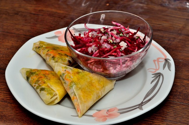 10. Servez avec une salade verte ou une crudité (ici duo de betteraves Chioggia et Rouge) et régalez-vous !!!