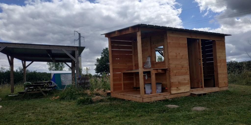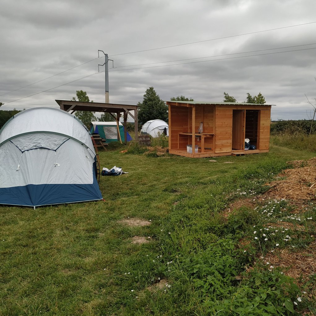 Le matin, petit déjeuner au chant du coq sous le préau nature ou à l’abris (selon météo) avec possibilité de déguster des produits artisanaux et des produits faits maison.